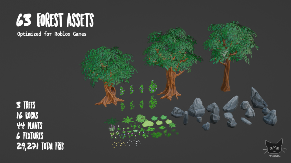 Hey, friends! Are you looking for new stylized assets to level up your maps? Introducing Friendly Forest, the ultimate stylized asset pack tailored for Roblox game developers: a comprehensive collection featuring three enchanting fantasy trees, lush flora variations, and intricately sculpted rocks to breathe life into your virtual worlds.